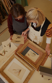 Sourcing the pieces is our passion. Drawing on a lifetime as a keen traveller, Siobhan enjoys looking abroad as well as sources closer to home. After careful consideration of each piece and discussion of the best way to present it, the framing is all done by hand in our studio in the rolling Northamptonshire countryside by Felicity.