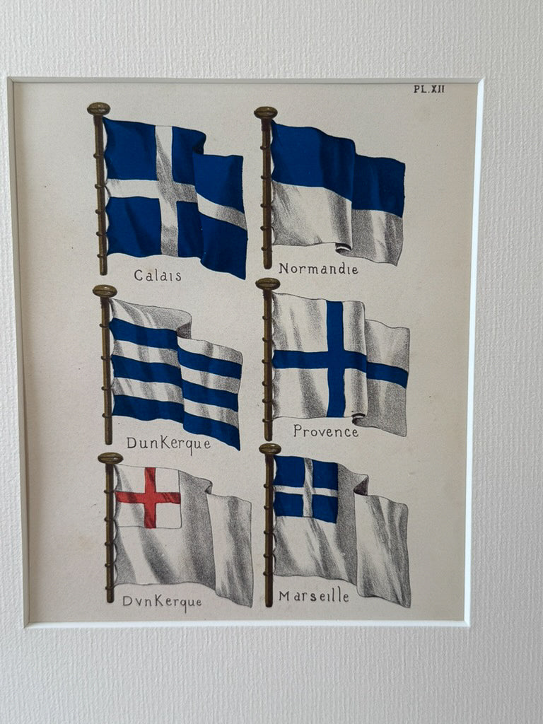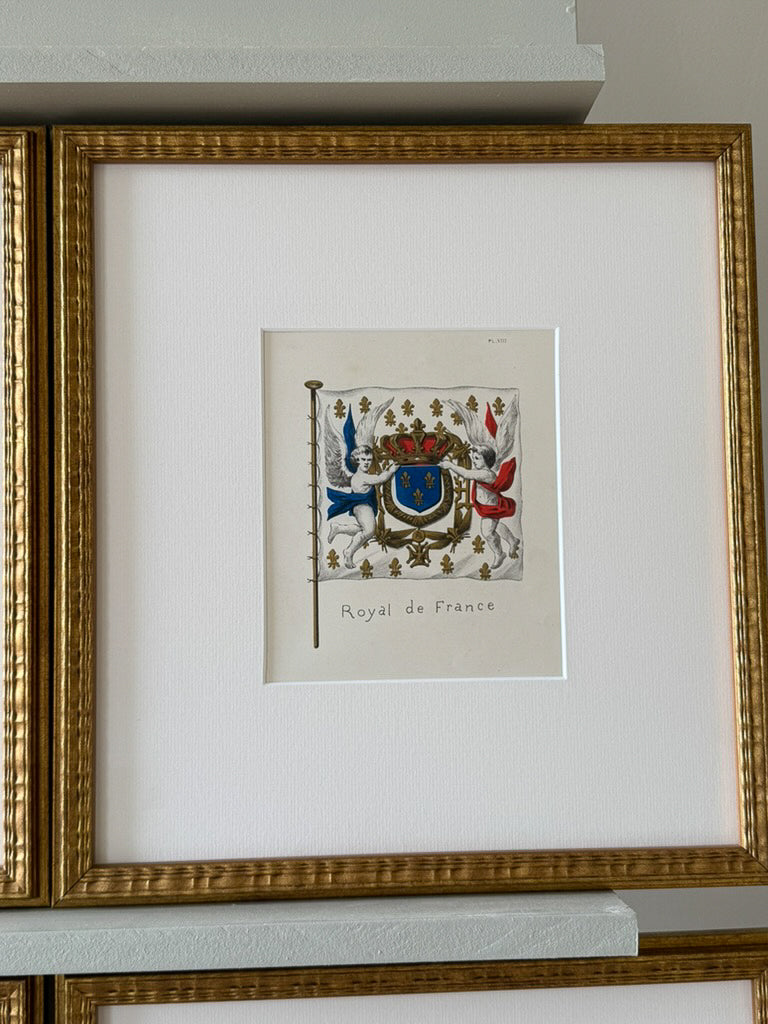 Dating from 1890 these bold French royal standards have been framed to stand proud above a sofa and bring a warm glow to a room. Both elegant and timeless this set has real presence.